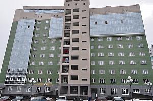 Утепление здания, монтаж алюминиевой подсистемы, монтаж керамогранита.