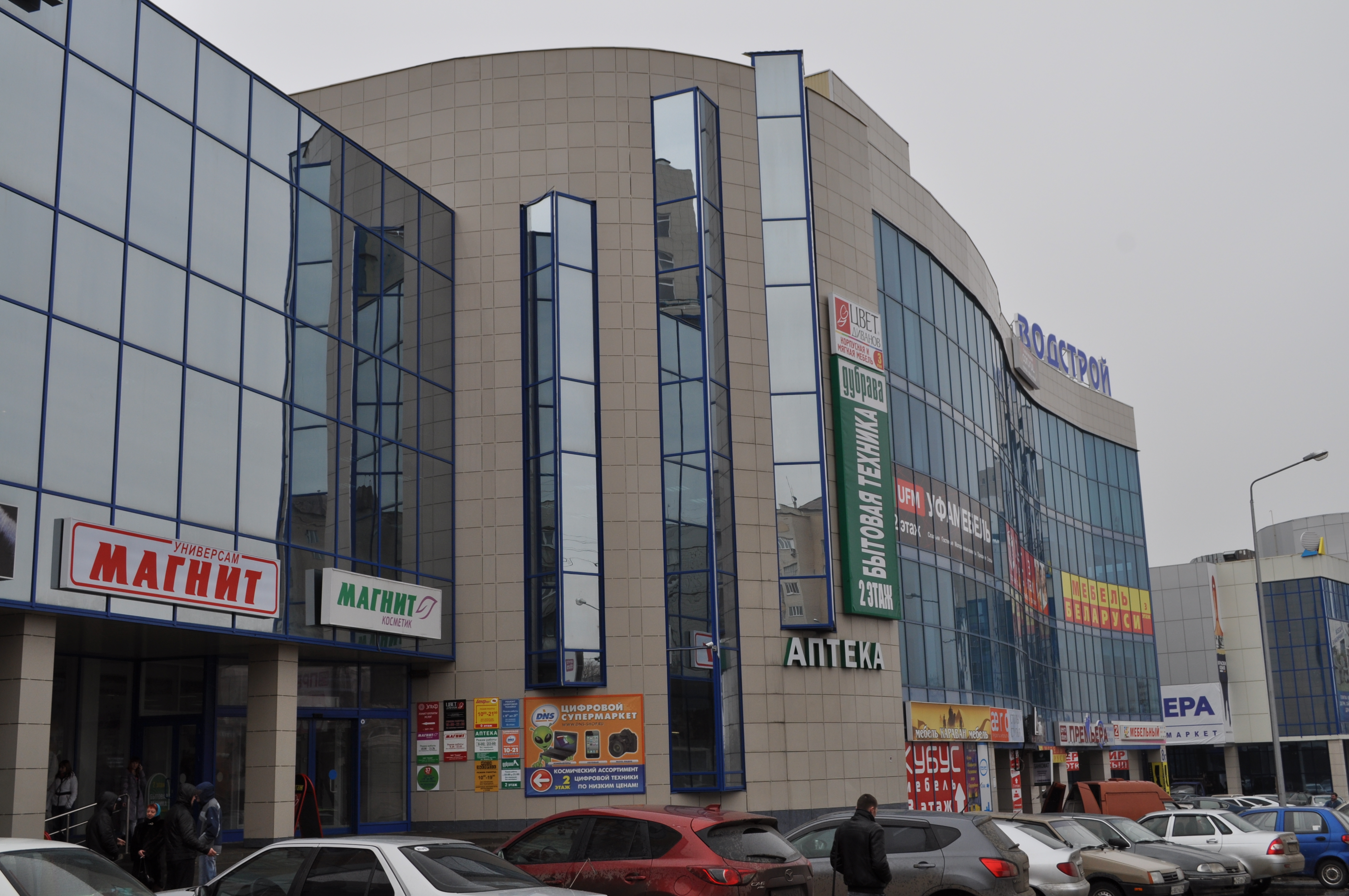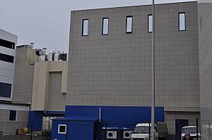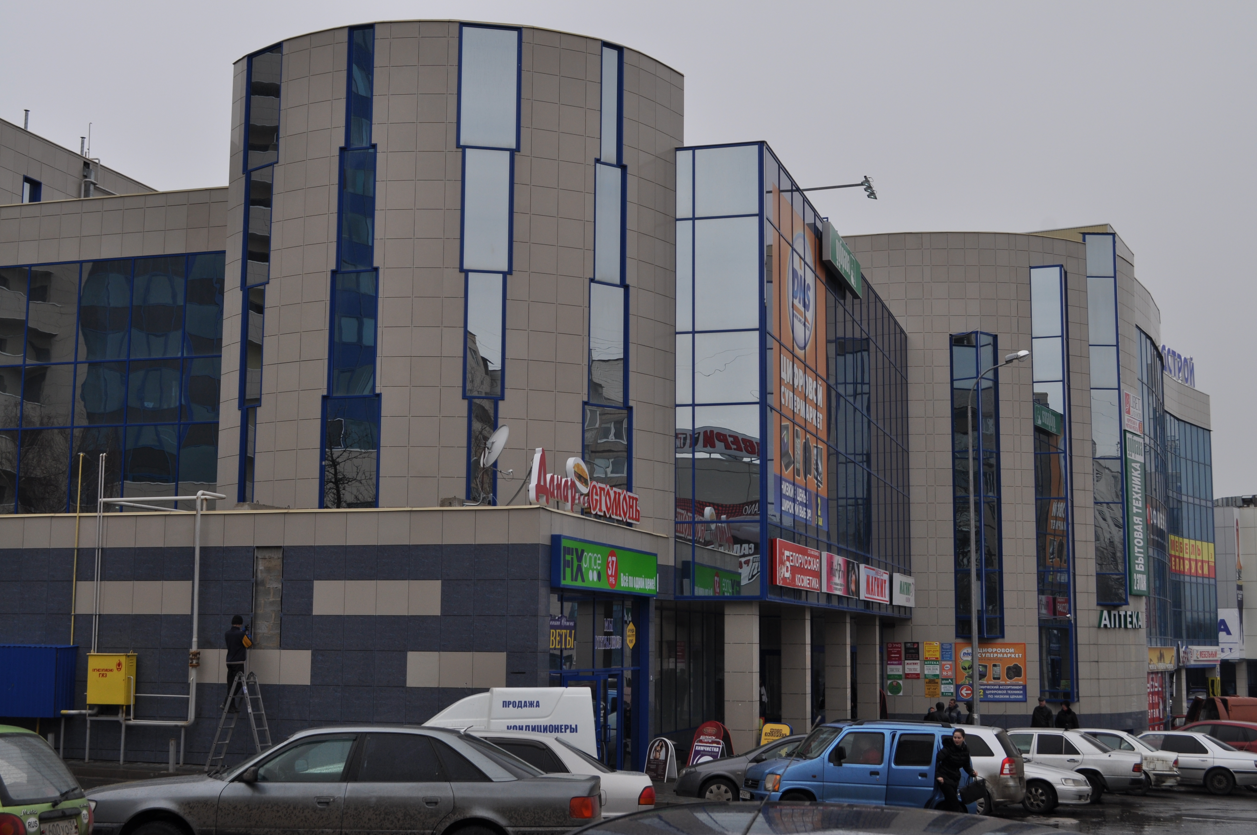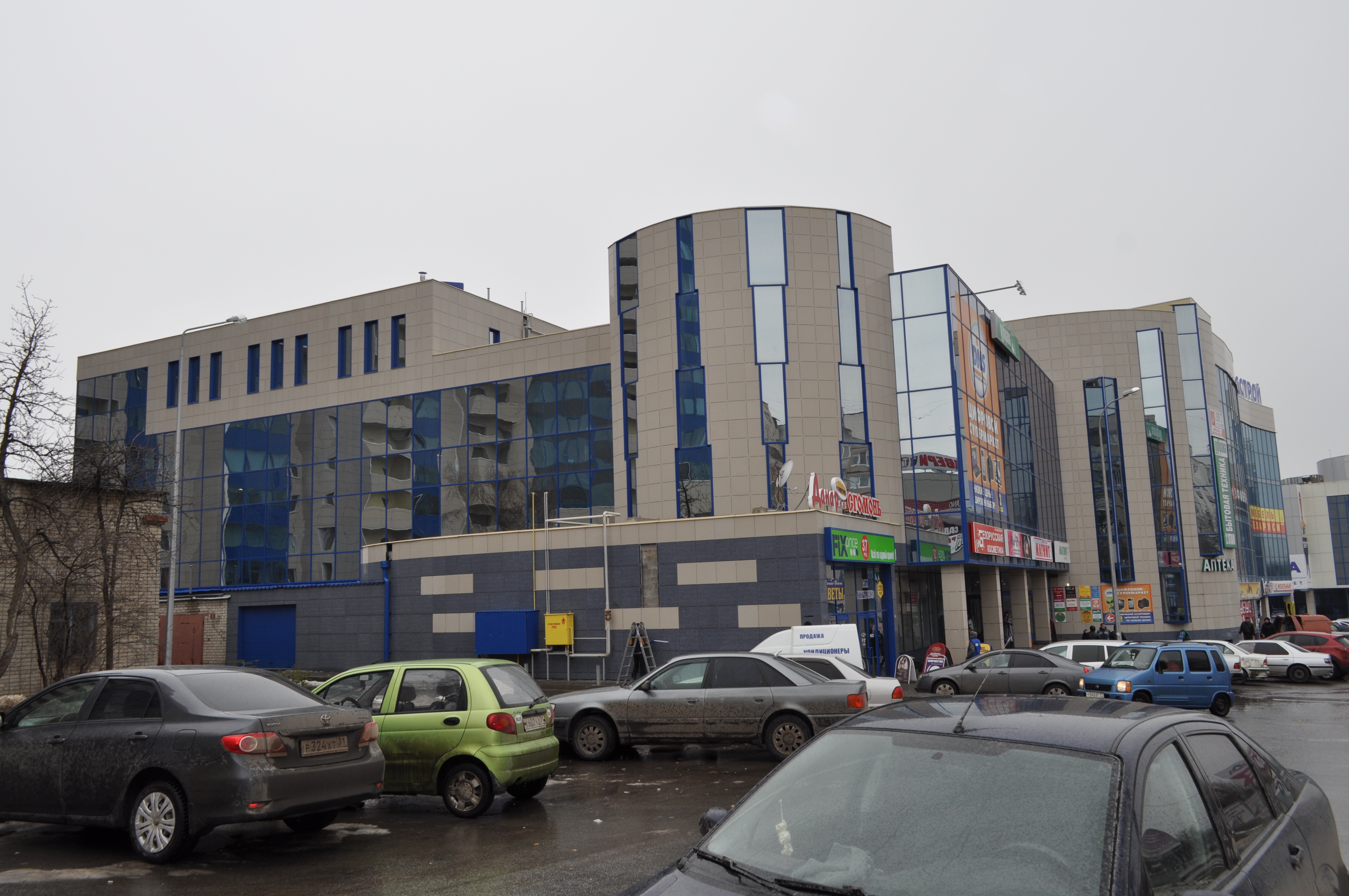 Торговый центр.г. Белгород.Производство работ - 2011 г.Вентилируемый фасад.Утепление здания, монтаж алюминиевой подсистемы,монтаж керамогранита.