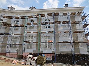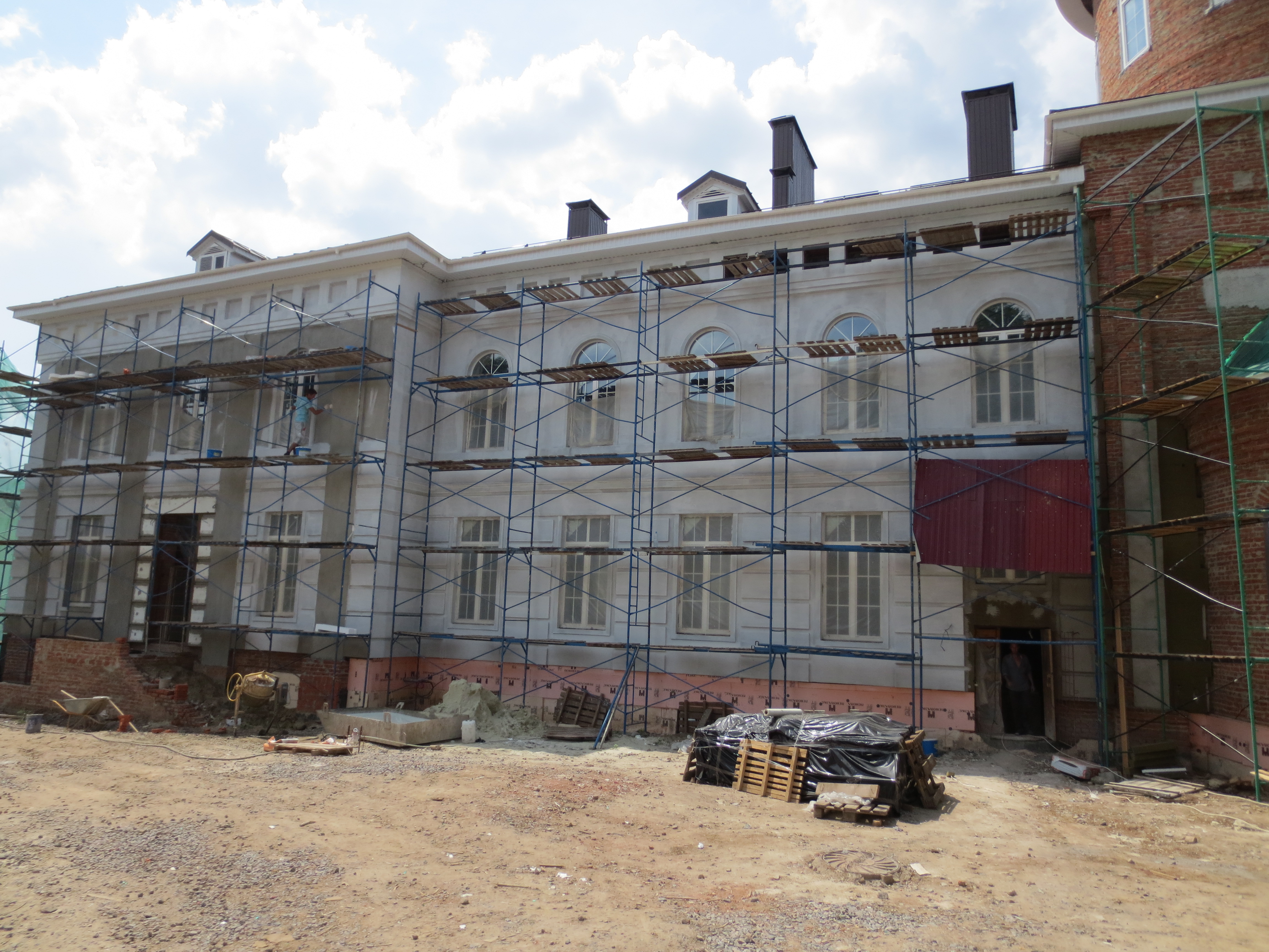 Стены, декоративные элементы - минеральная декоративная штукатурка 1,5 мм STOMIX, с последующей окраской фасадными красками JUB.